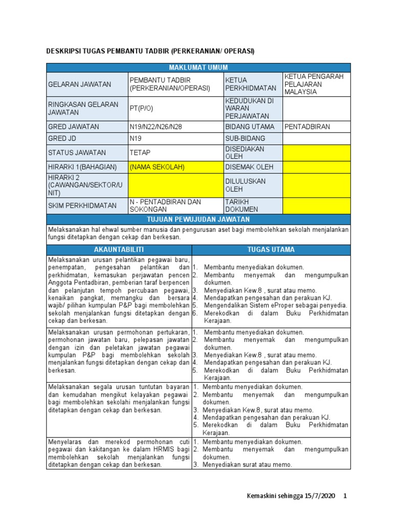 Senarai Tugas Pembantu Tadbir Perkeranian Operasi Gred N19 Index My
